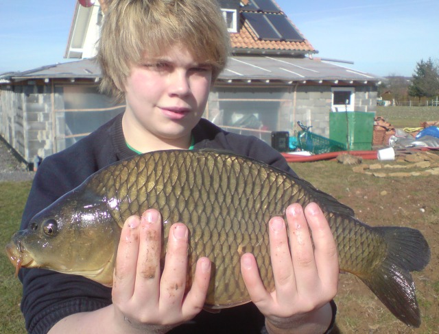 Leider wurde außer unzähligen Rotaugen, 1 Karpfen und 2 Schleien nix größeres gefangen. Da an den Tagen zuvor die Senioren mit dem Zeltlager dran waren, wobei sie kräftig den Weiher geleert haben. Zum Glück wird unser Weiher jedes Jahr mit neuen Besatz gefüllt.